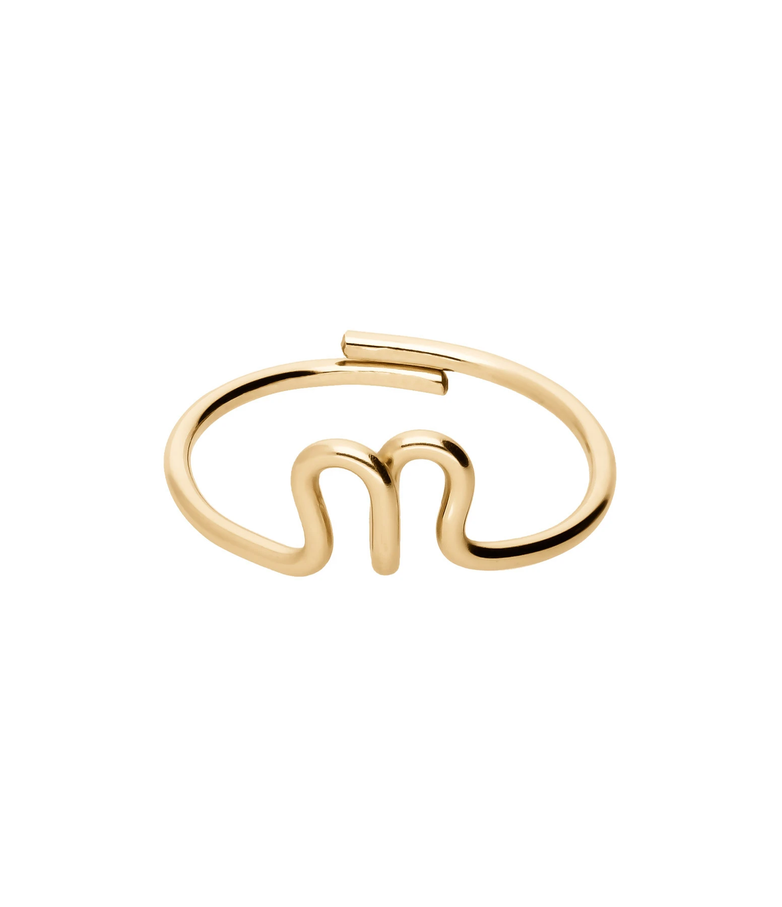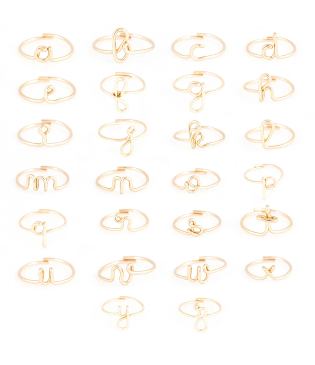 Bague composée d’un seul et même fil d’or gold filled jaune, formant une lettre minuscule.