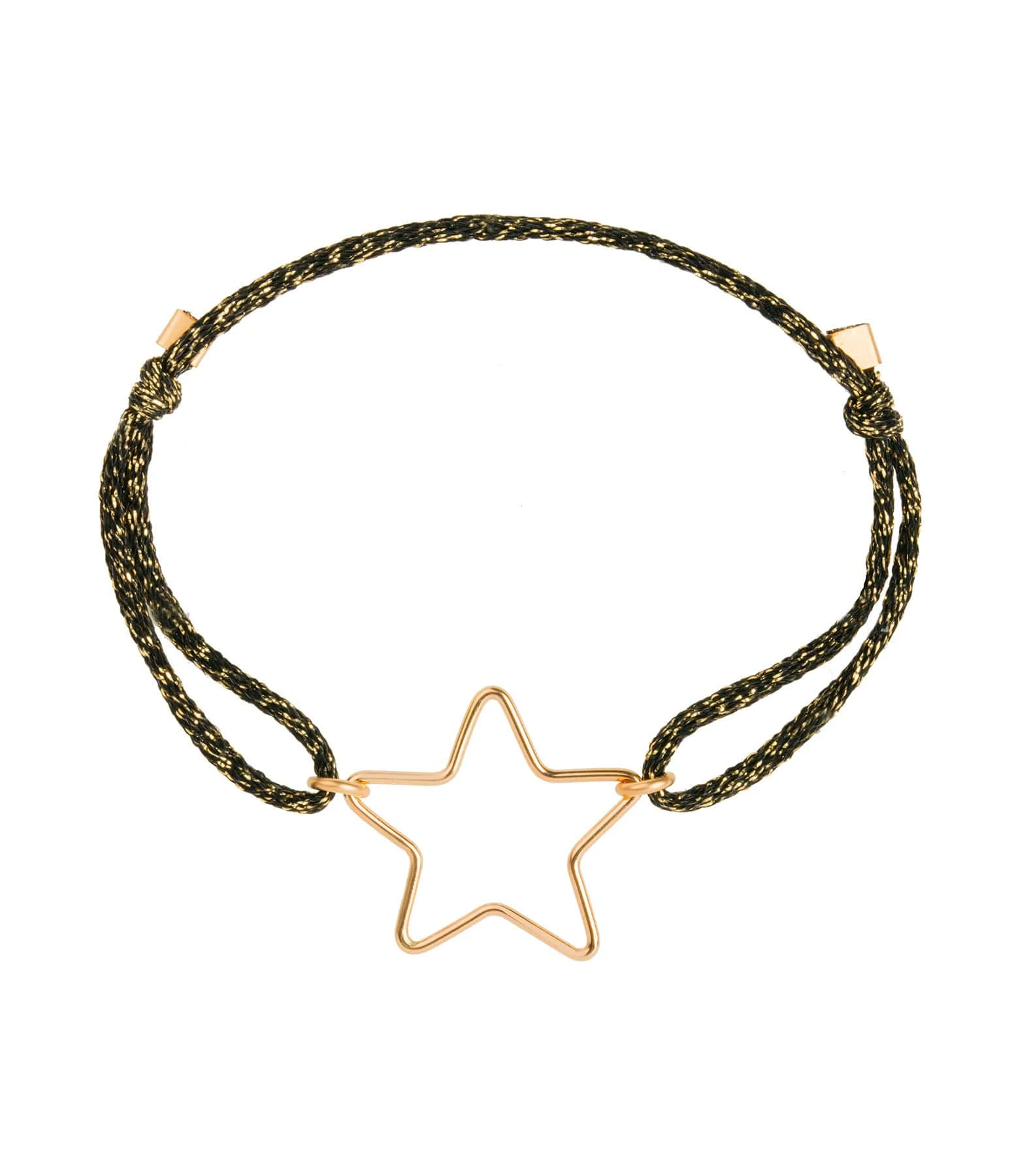 Bracelet sur cordon de soie et lurex, agrémenté d’une étoile en gold filled. Cordon ajustable par nœud coulissant.