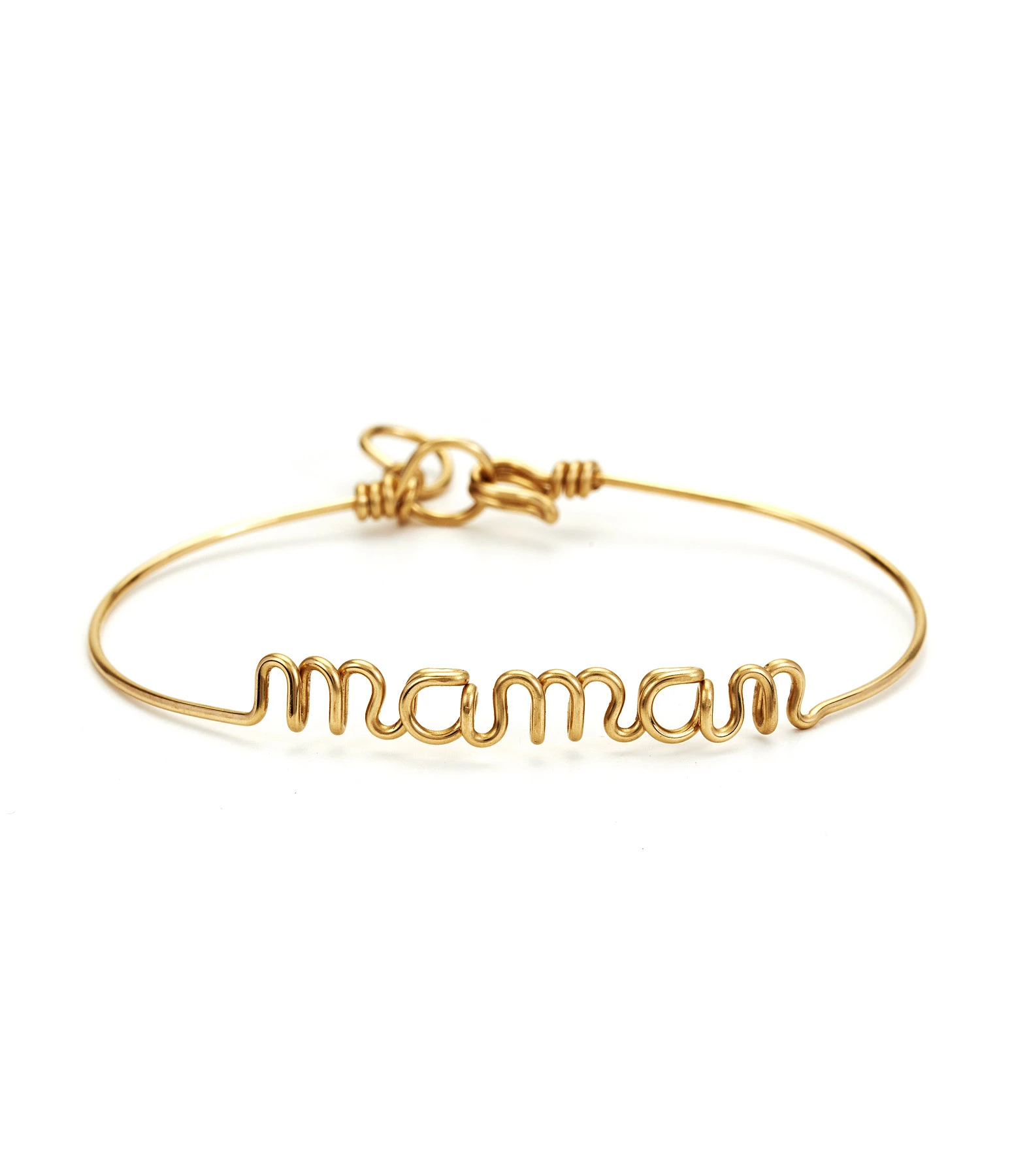 Bracelet jonc composé d’un seul et unique fil d’or gold filled, formant le mot “Maman”. Se porte ajusté.