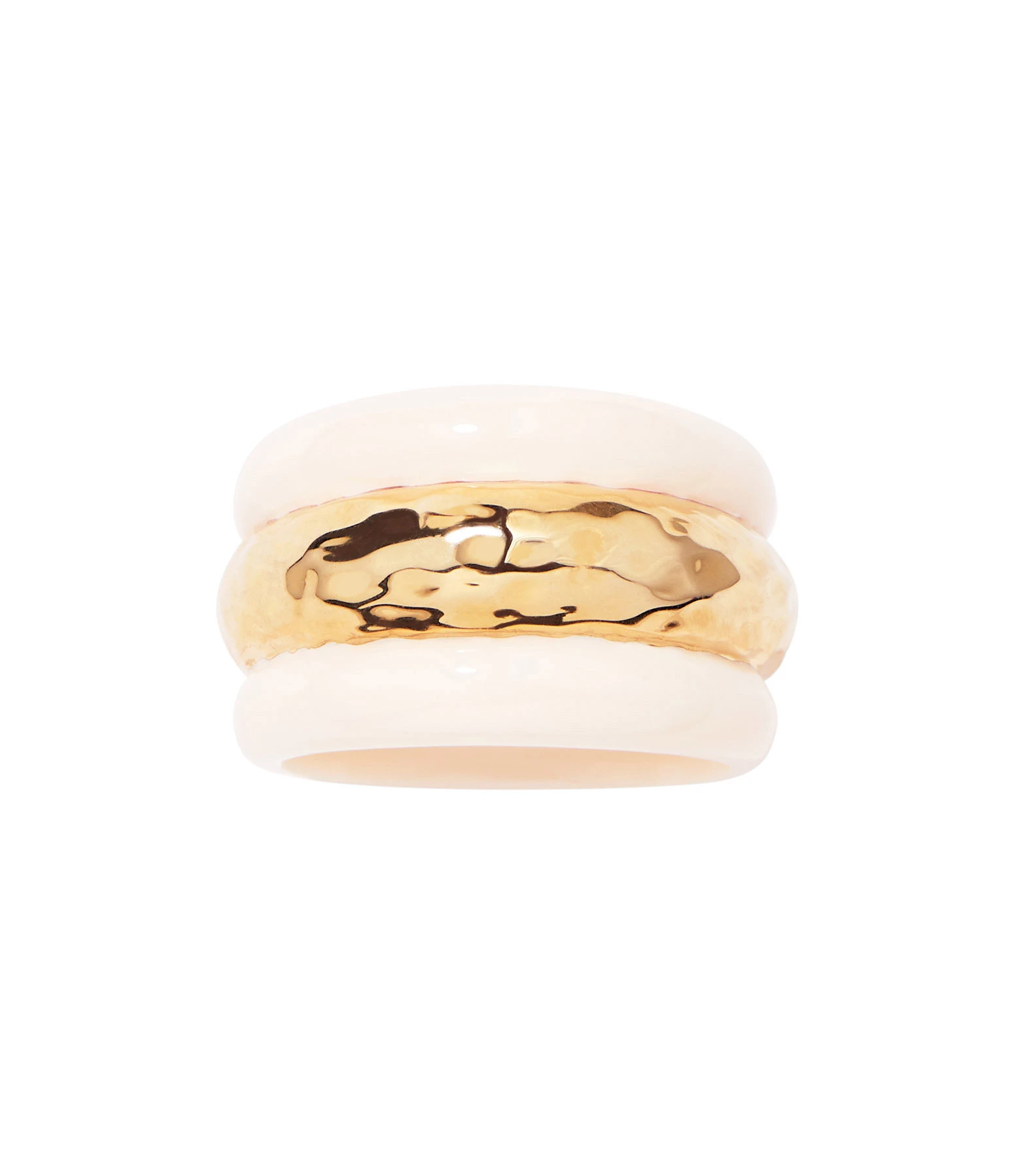 Bague en bakélite ivoire avec détails dorés martelés.