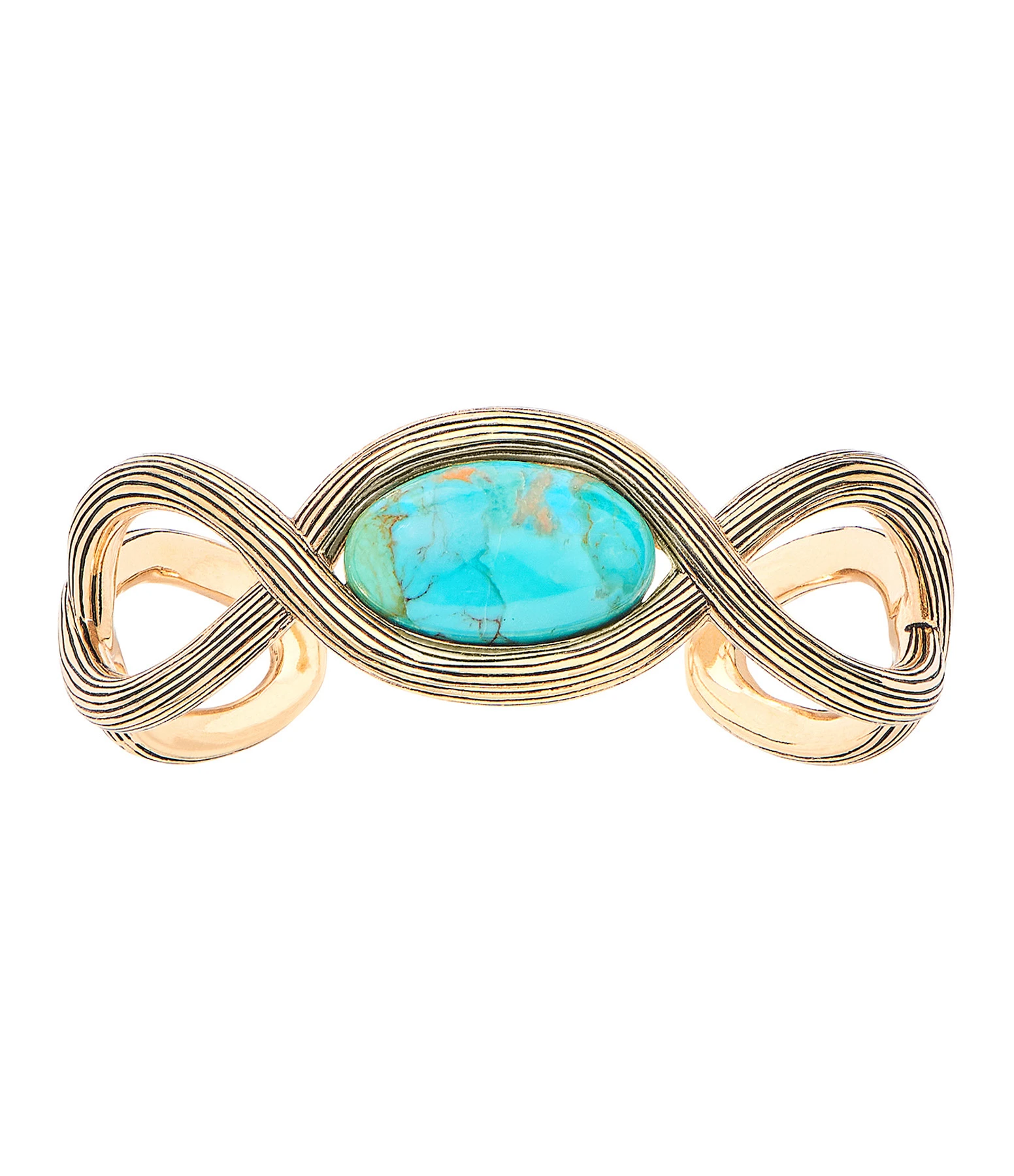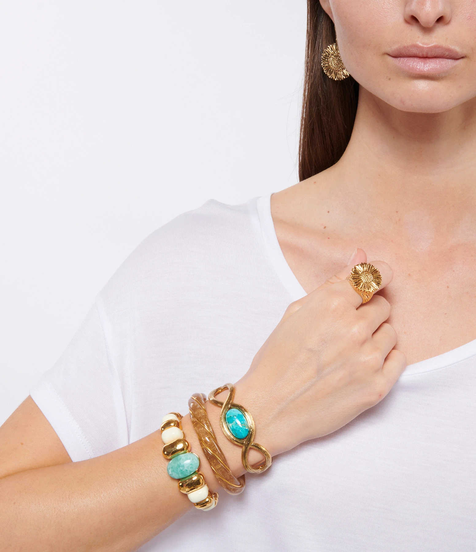 Jonc doré torsadé avec cabochon en turquoise verte. Jonc rigide, non réglable.