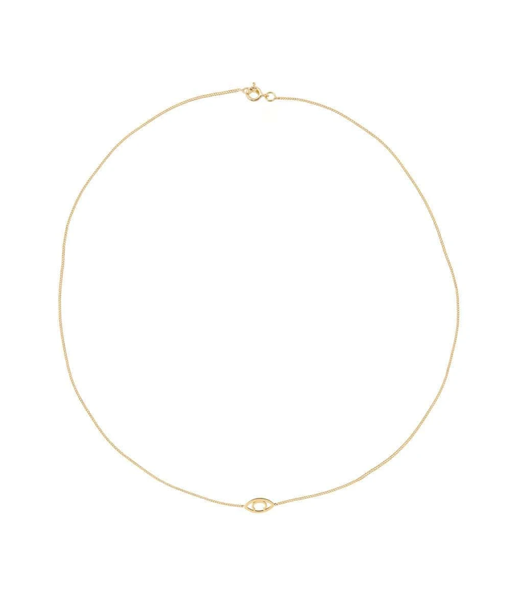 Collier en or jaune sur chaĂźne en maille gourmette agrĂ©mentĂ© d’une pampille signĂ© Charlet.