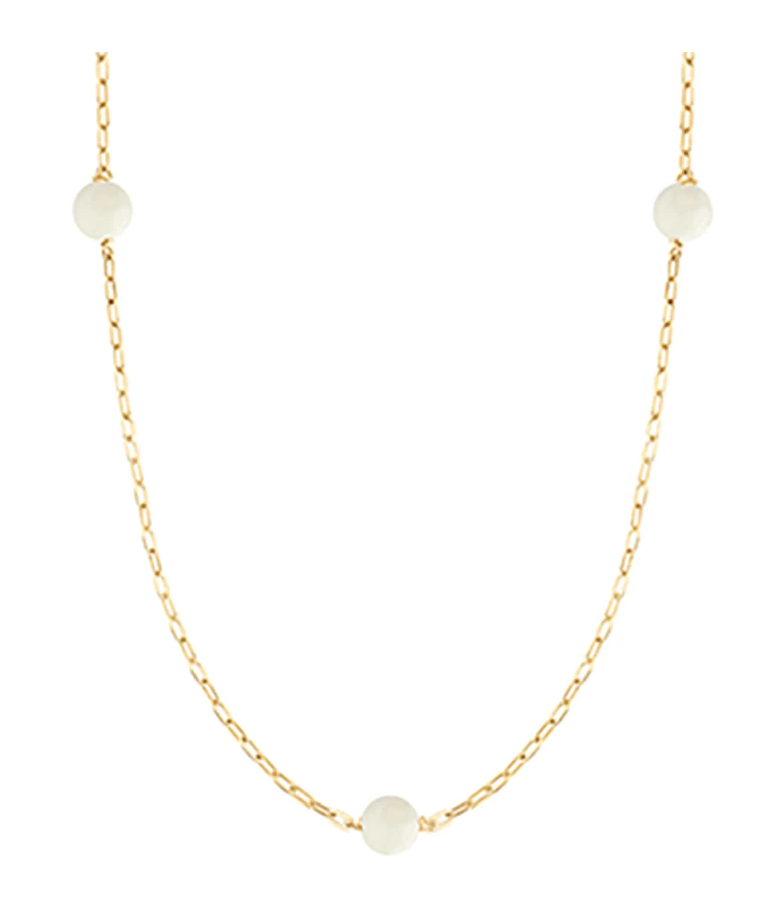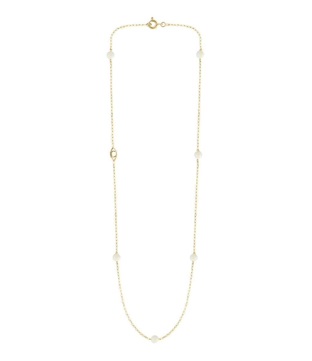 Collier en or jaune composé d’une chaîne forçat décorée de six perles de nacre et d’un symbole signé Charlet.