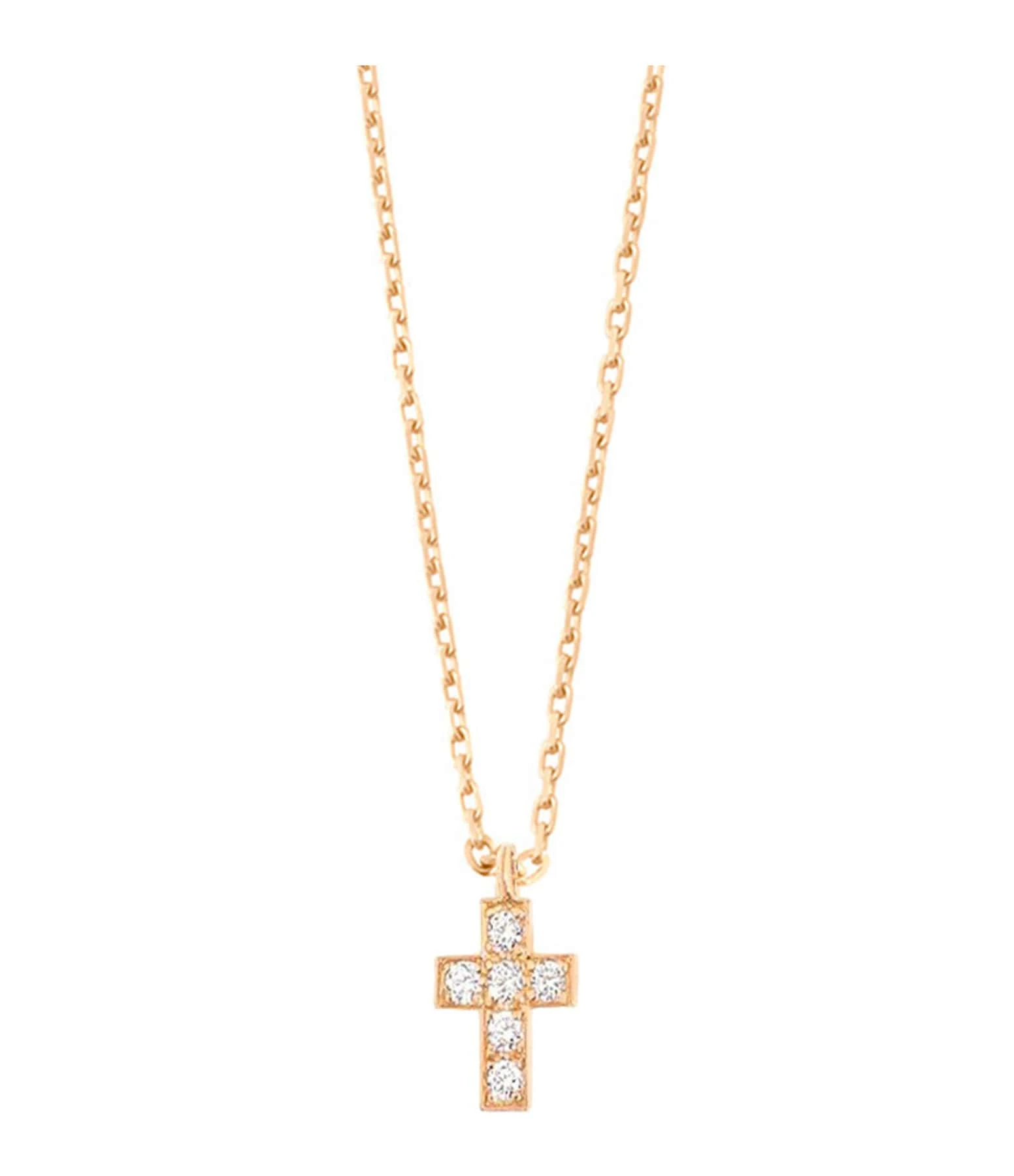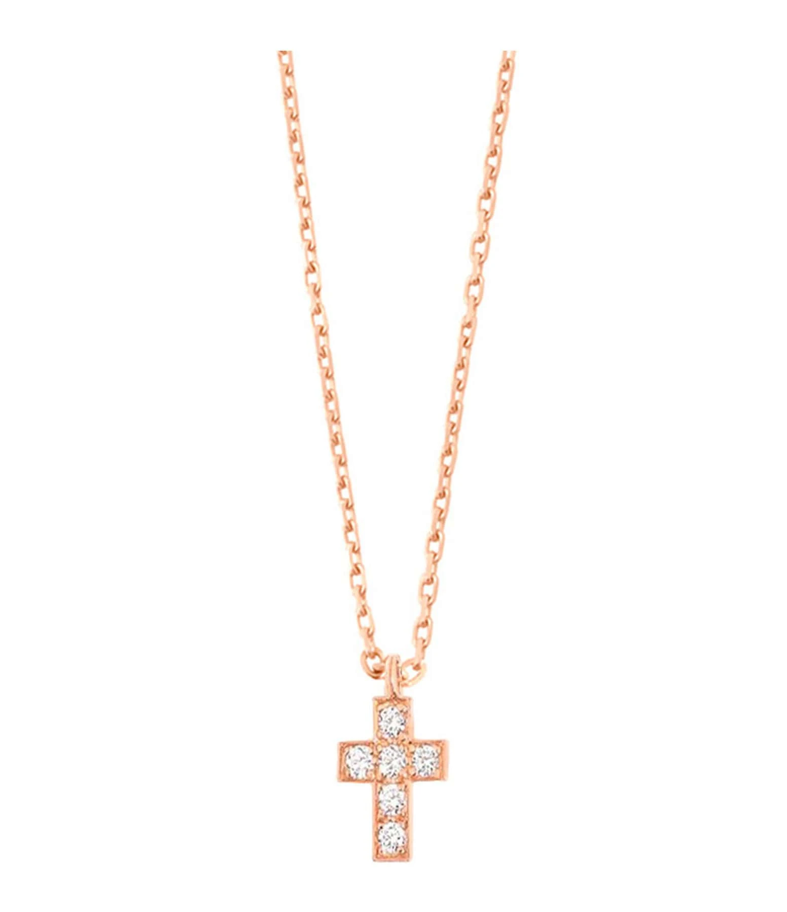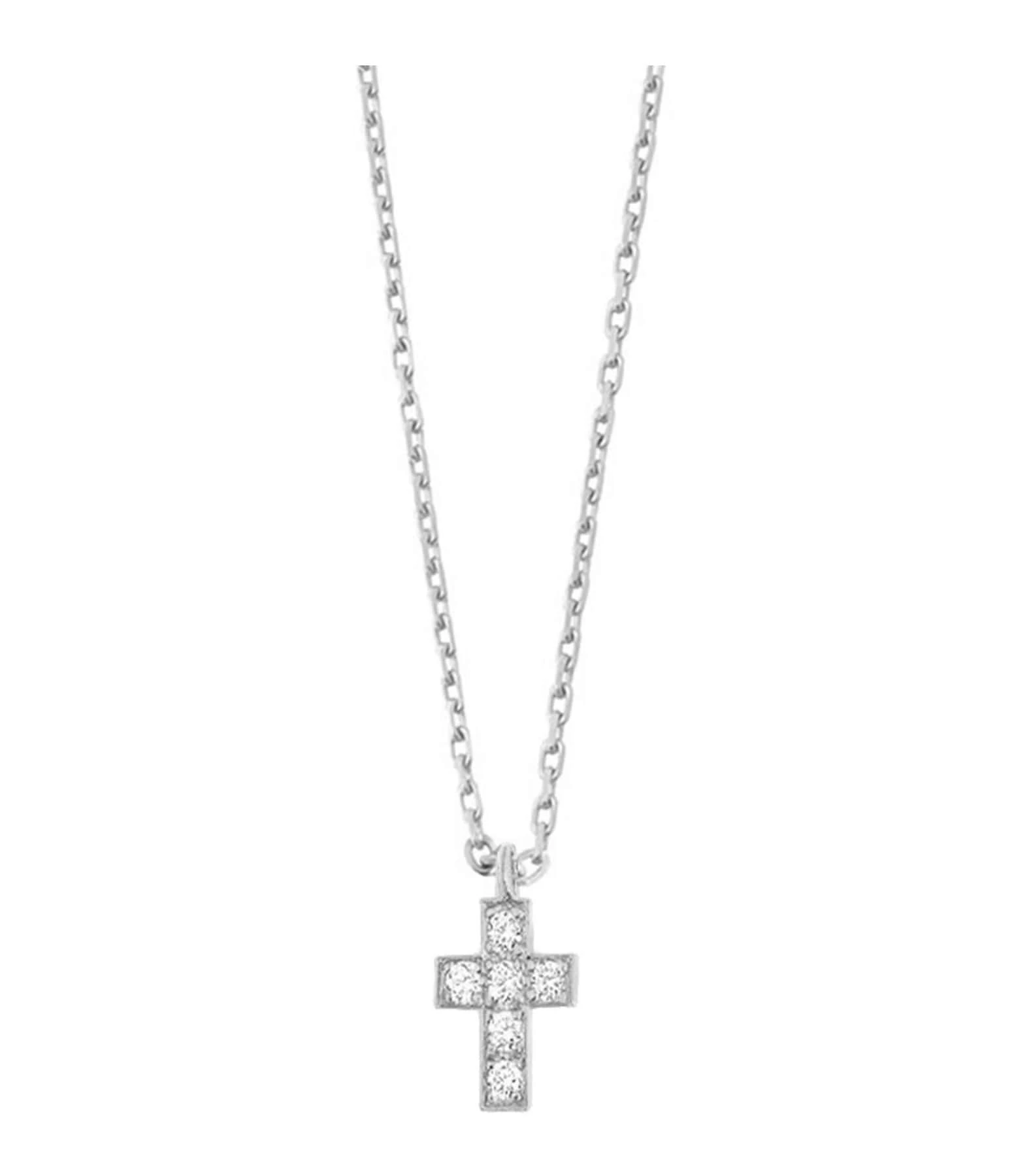 Collier sur chaîne en or avec une croix sertie de six diamants. Fermoir classique à ressort avec contre-anneau.