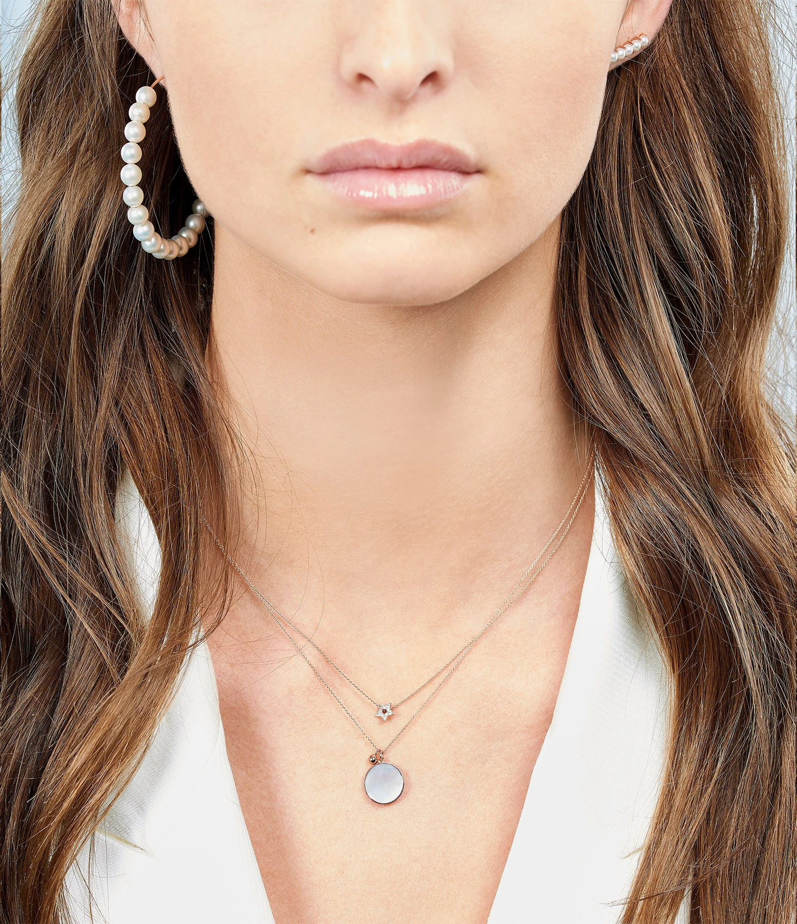 Conseil stylistique : Maria est le nom de la grand-mère d’une amie chère à Frédérique, qui portait à son doigt de fines perles. Comme des trésors perdus dans le temps, ces perles de différents diamètres sont à associer au gré de ses envies.