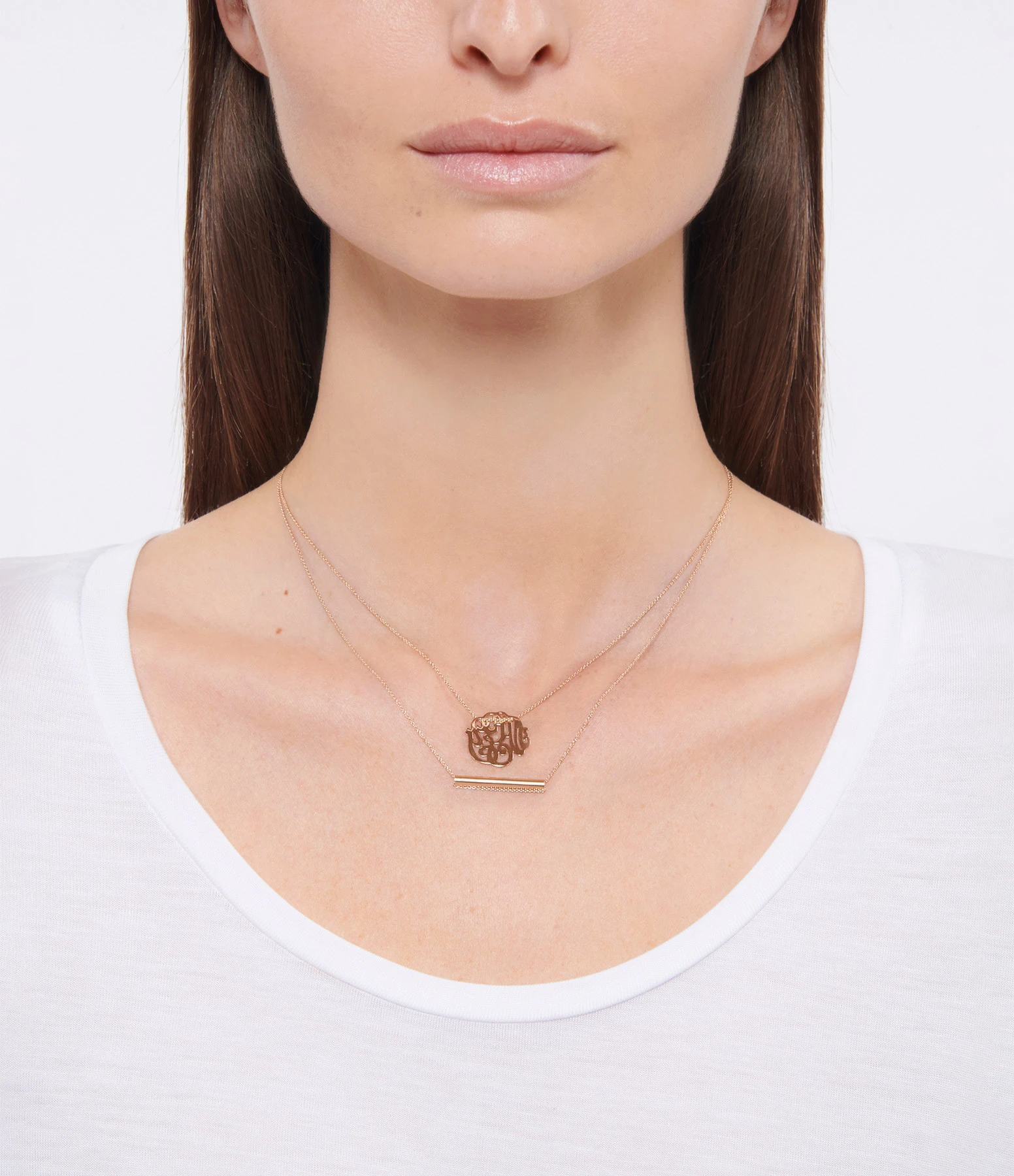 Collier sur chaîne en or rose avec pendentif monogramme. Fermoir classique à ressort.