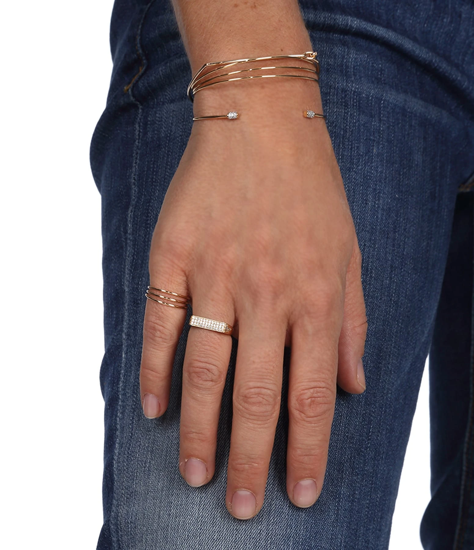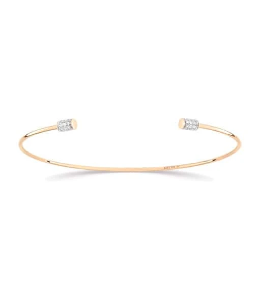 Bracelet jonc en or rose fini par des petits tubes sertis de diamants blancs.