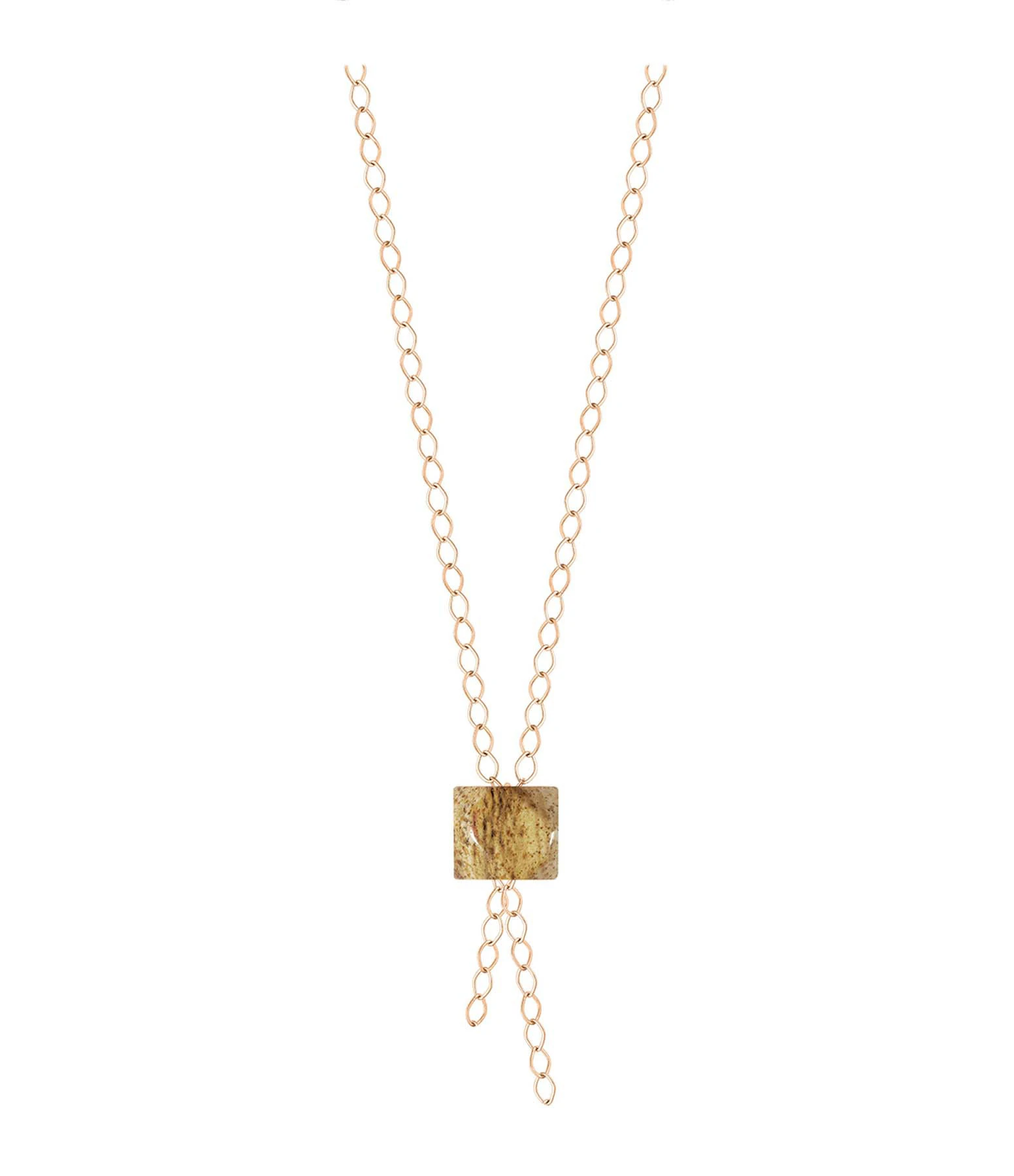 Collier sur chaîne en or rose avec pampille carrée en jaspe. Fermoir anneau ressort.
