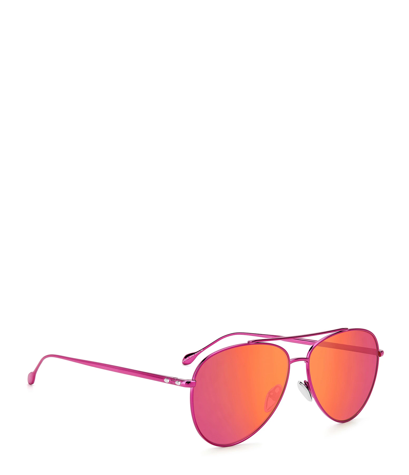 Lunettes de soleil style aviateur. Monture rose. Verres dégradés roses et jaunes.