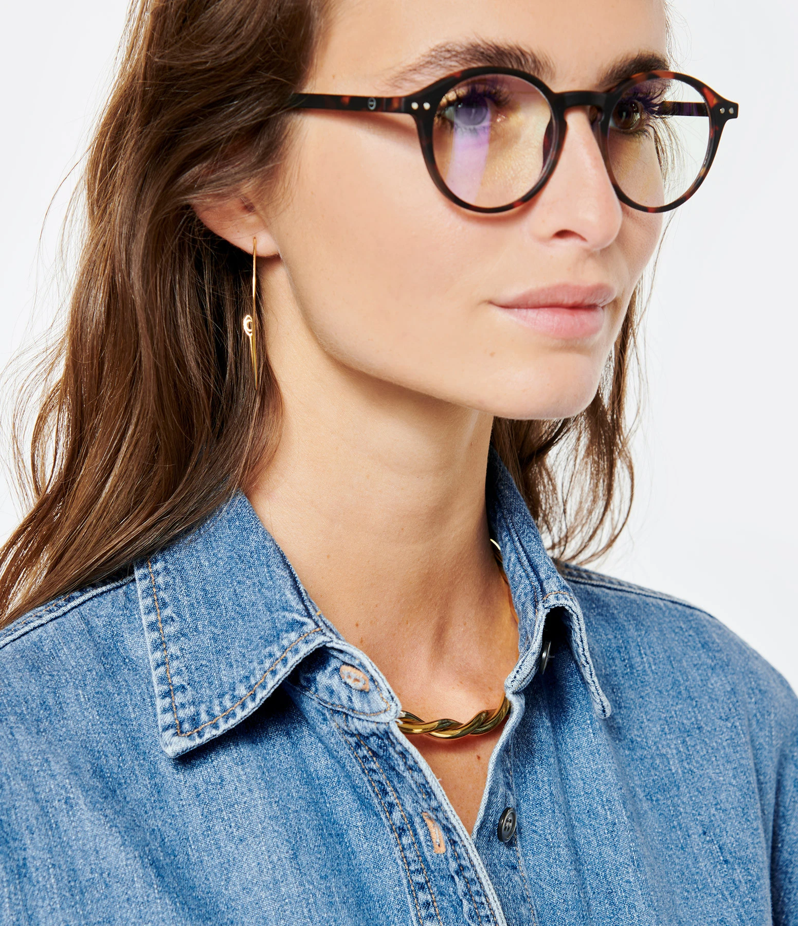 Lunettes rondes effet écaille, spéciales écran filtrant 40% de la lumière bleue (rayons HEV émis entre 400 et 460nm). Touché velours. Branches flexibles avec charnière à ressort pour s’adapter à toutes les morphologies et les tailles de visage. Monture souple et confortable.