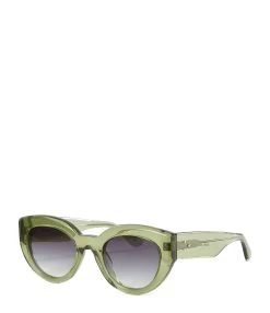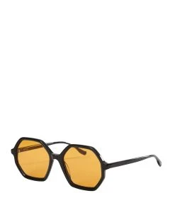 Lunettes de soleil avec monture écaille marron et verres dégradés marrons et bleus.