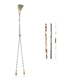 Bracelet de cheville sur cordon doré orné de saphir multicolore. Fermeture par nœud.