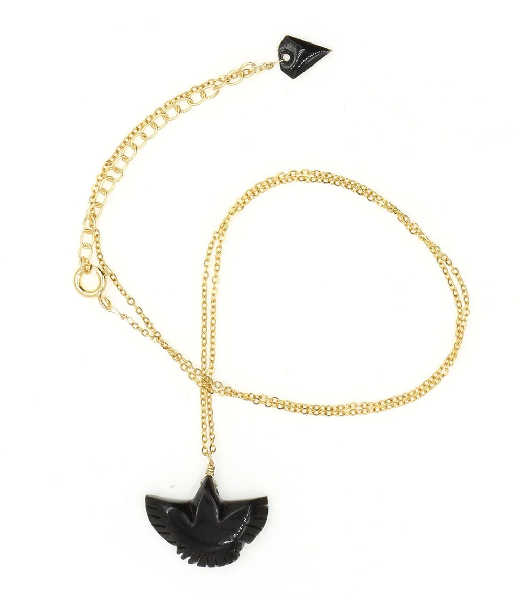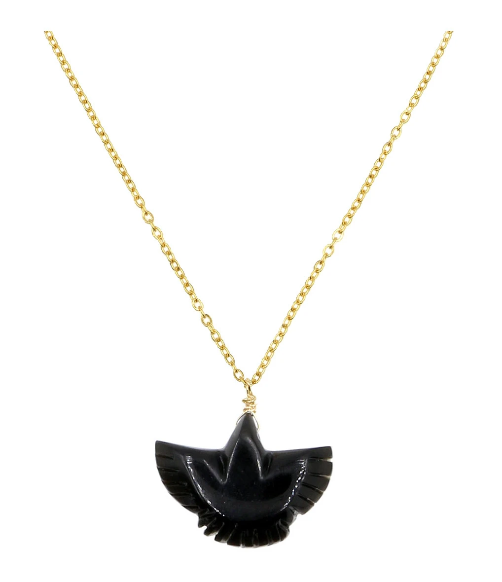 Collier sur chaîne en argent doré, avec pendentif représentant un condor en Onyx. Fermoir à ressort avec chaîne de réglage.