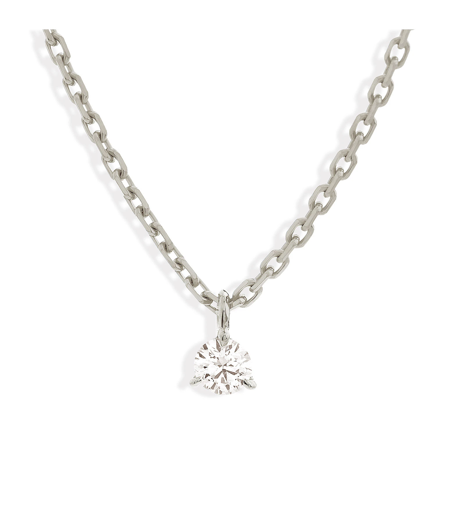 Collier en or blanc avec un diamant rond serti en pendentif. Fermoir à ressort avec chaînette de réglage.