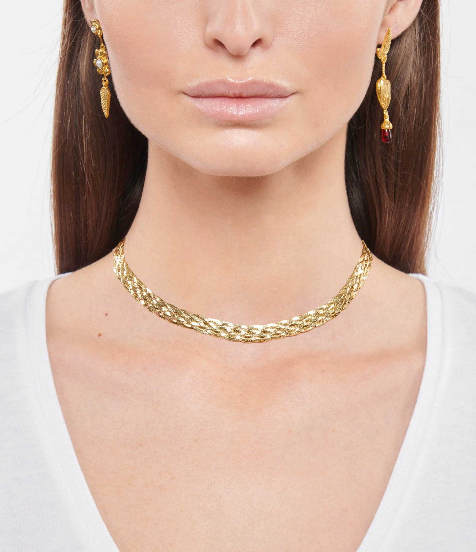 Collier en chaîne chevron tressée en argent plaqué or, un côté mat, un côté brillant. Se positionne parfaitement le long de la clavicule. Chaînette de réglage de 5 cm.