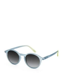 Lunettes de soleil effet écailles pour femme avec pont haut et rond. Verres fumés bleu gris.