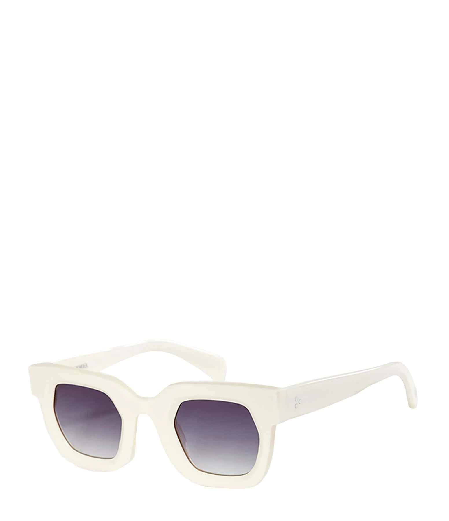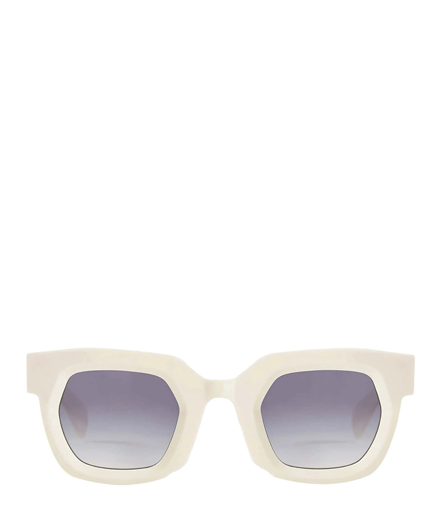 Lunettes de soleil écrues pour femme. Monture acétate épaisse. Verres fumés bleus.