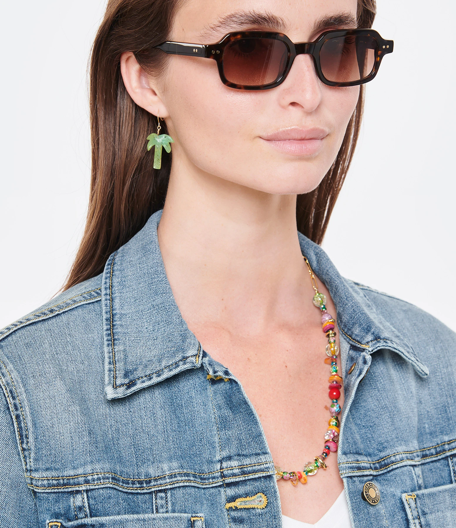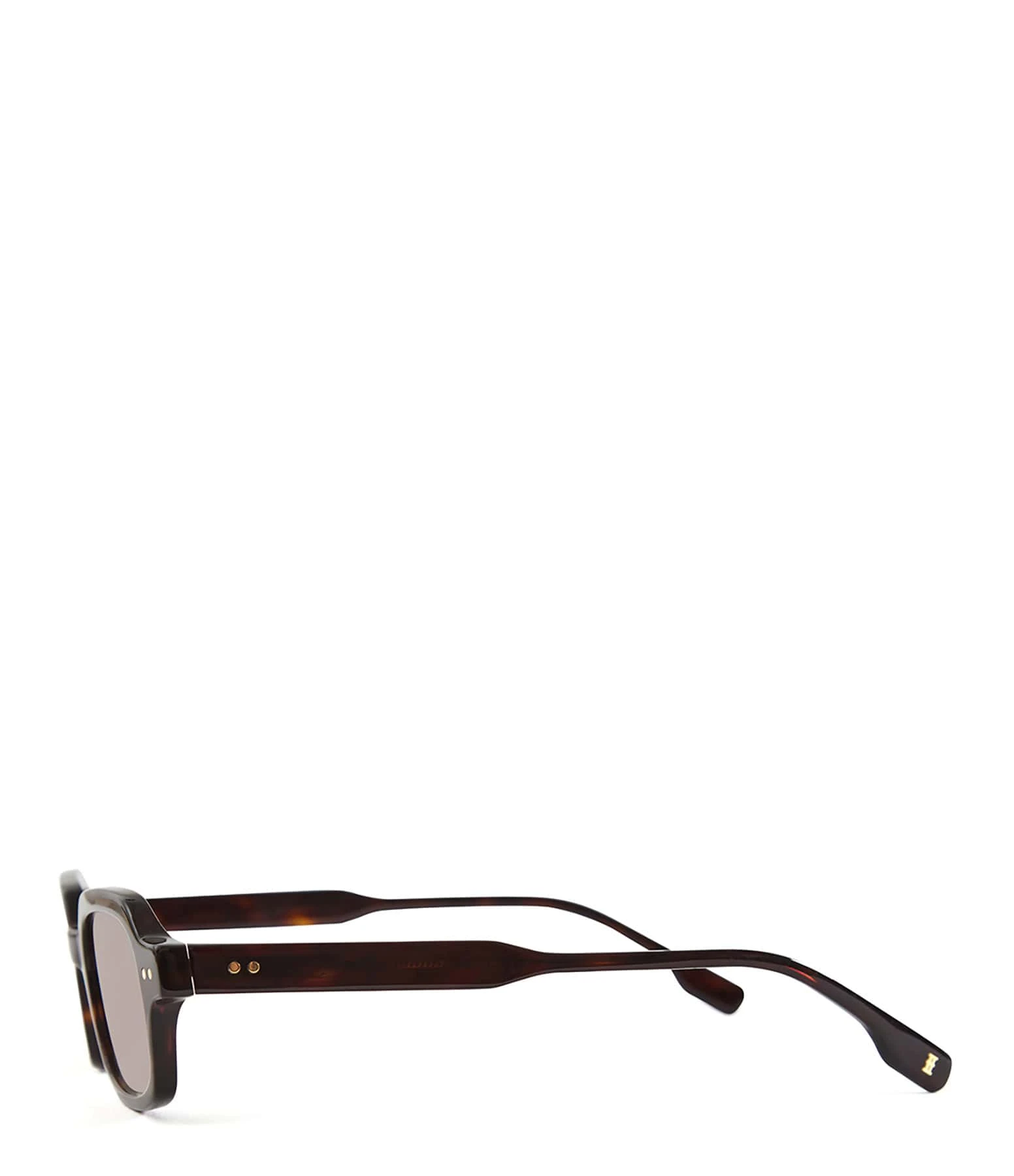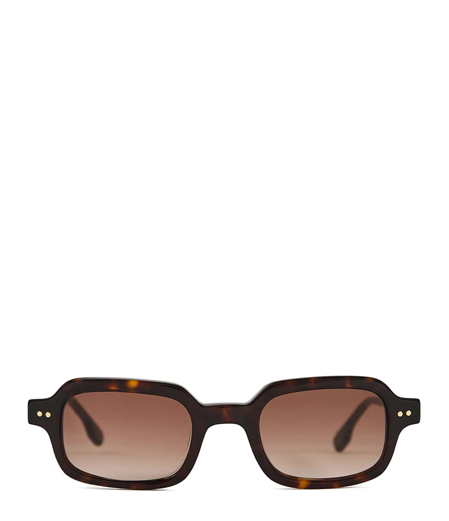 Lunettes de soleil rectangulaires effet écailles marrons pour femme. Verres fumés marrons.