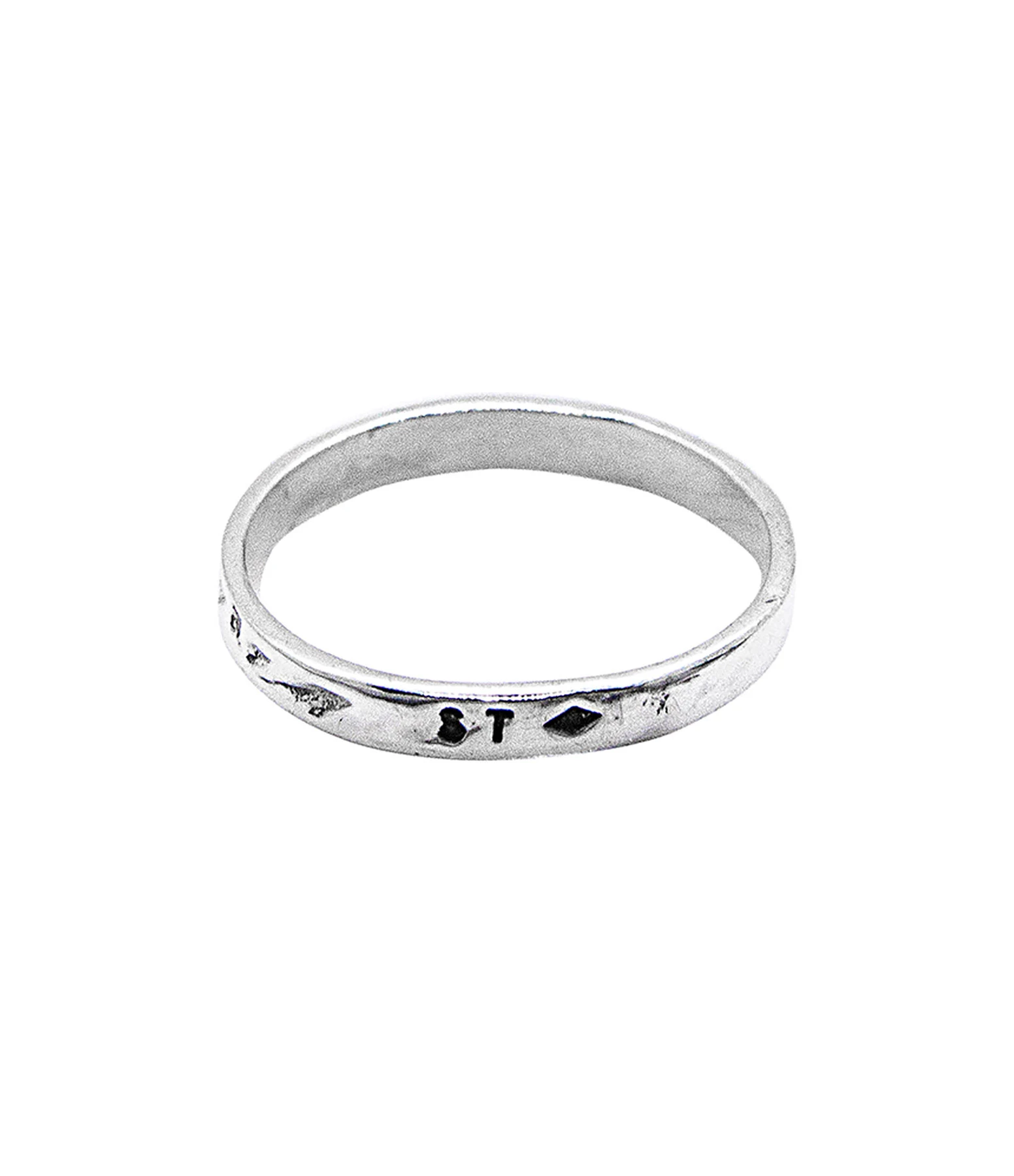 Conseil d’entretien : Afin de conserver longtemps la patine noire dans la gravure de votre bijou, évitez les contacts avec l’eau les premières semaines. L’argent est une matière naturelle qui se patine avec le temps, sa couleur évoluera selon l’acidité de votre peau et les conditions atmosphériques. Utilisez un chiffon doux et un produit adapté pour le nettoyer en évitant d’effacer la patine, rincer abondamment, puis essuyez.
