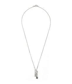Gourmette sur chaîne en argent, avec cylindre gravé “Une main nue alors est venue qui a pris la mienne”. Fermoir classique à ressort.