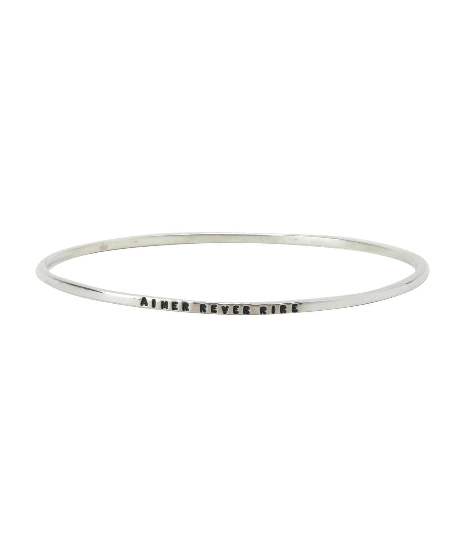 Bracelet jonc en argent avec gravure “Aimer Rêver Rire”.