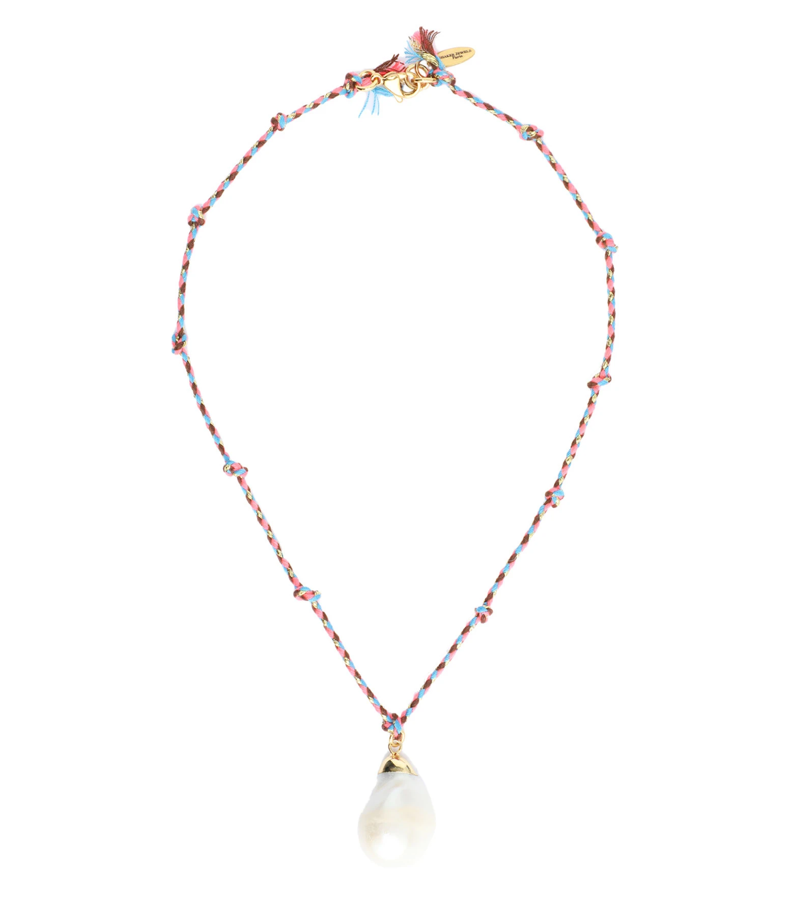 Collier cordon multicolore avec pendentif perle d’eau douce nacré. Fermoir classique à ressort.