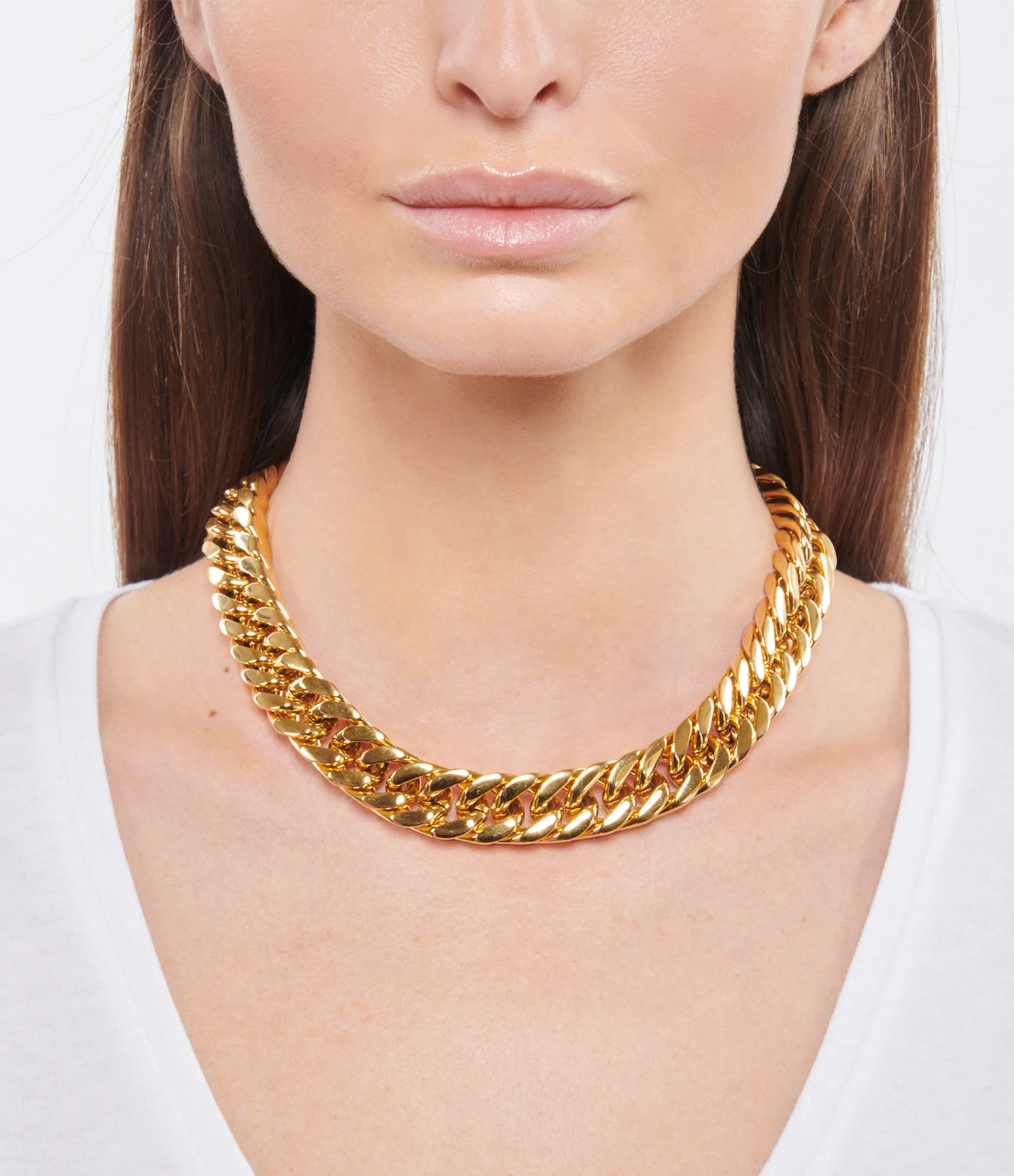 Collier chaîne maille en laiton doré. Fermoir à cliquet ovale.