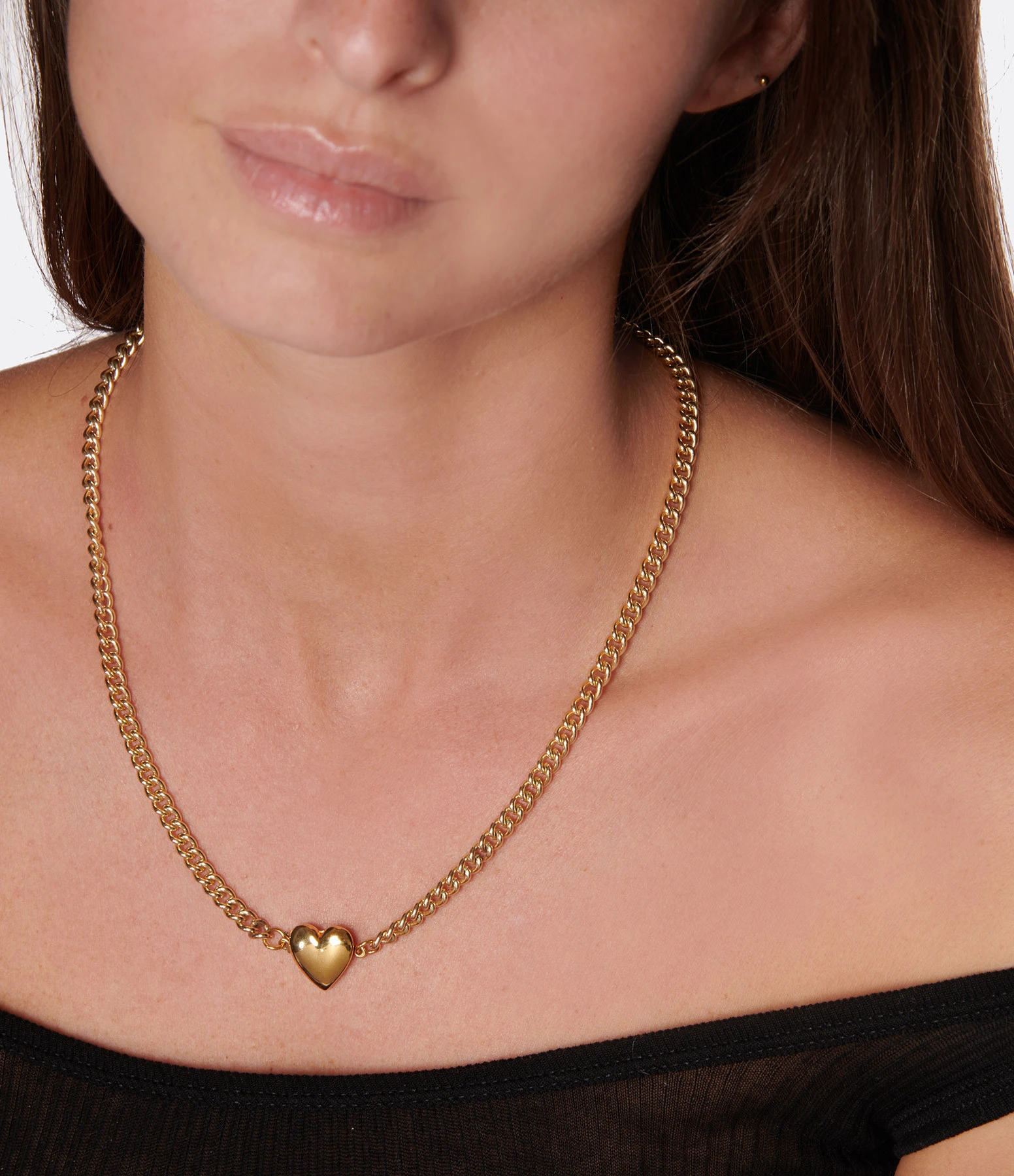 Collier chaîne en laiton doré orné d’un cœur. Fermoir à cliquet.