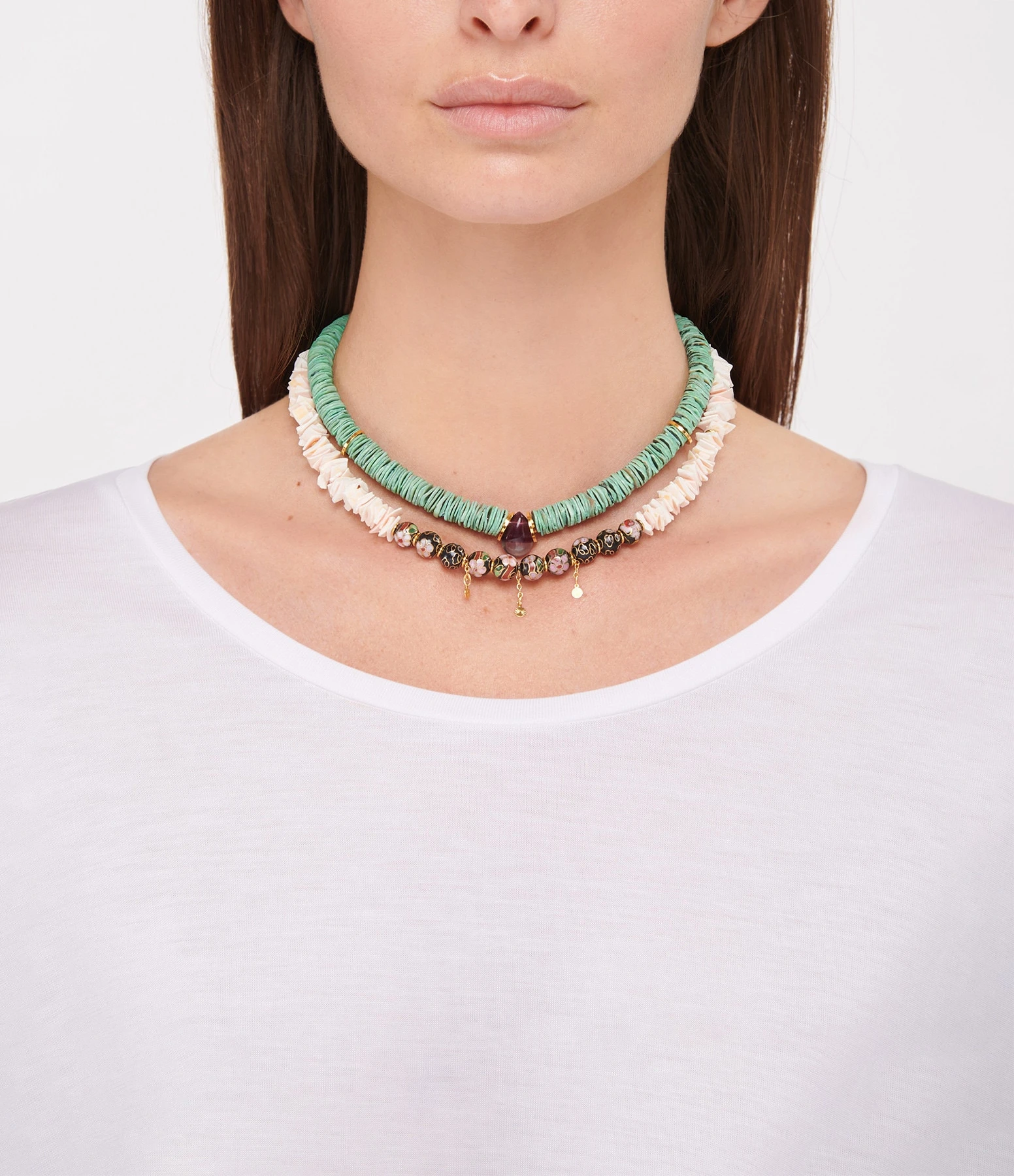 Composition : Perles en verre Nacré, Coquillages, Pierres.