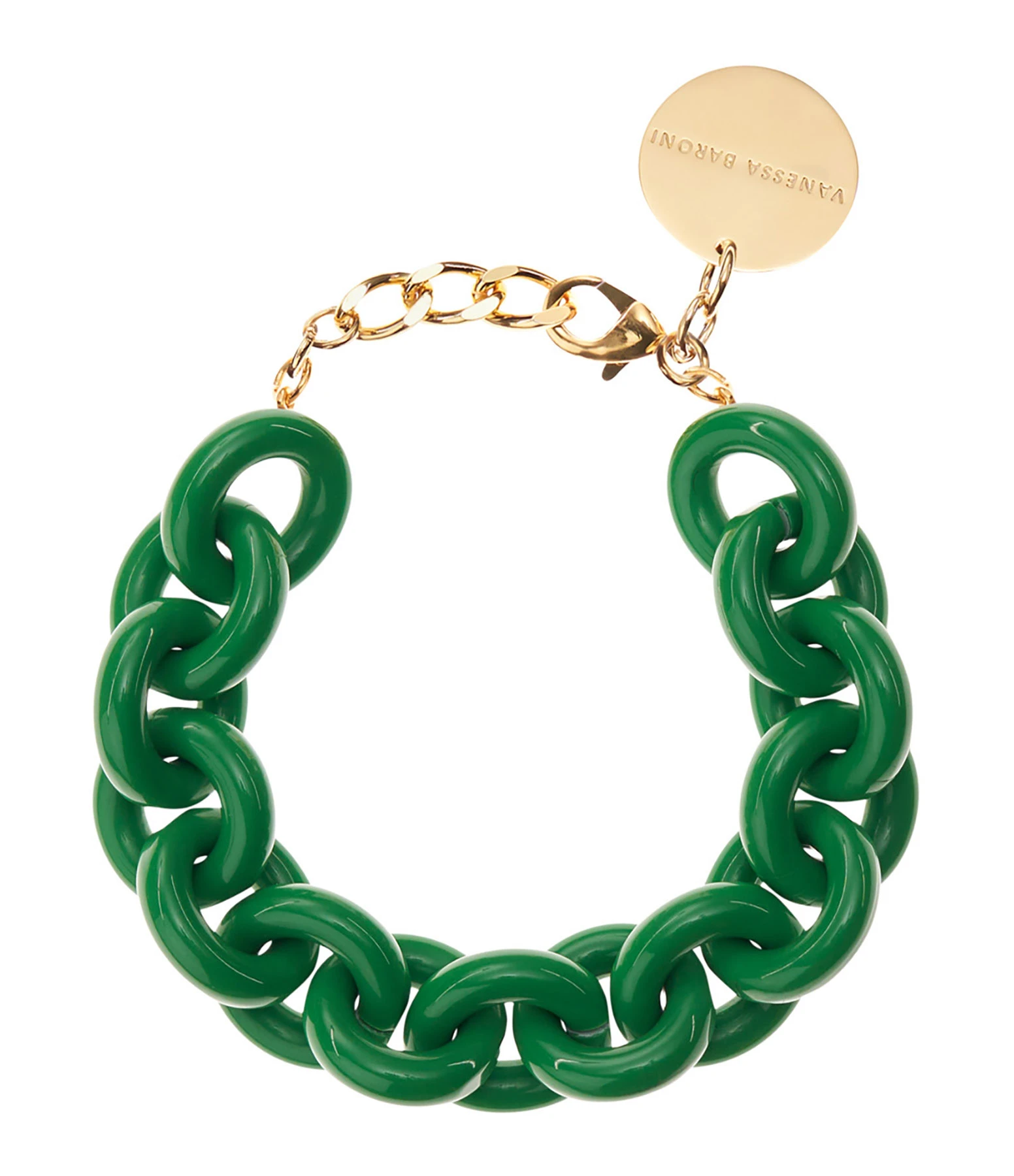 Bracelet vert foncé à maille jaseron. Fermeture classique à mousqueton.