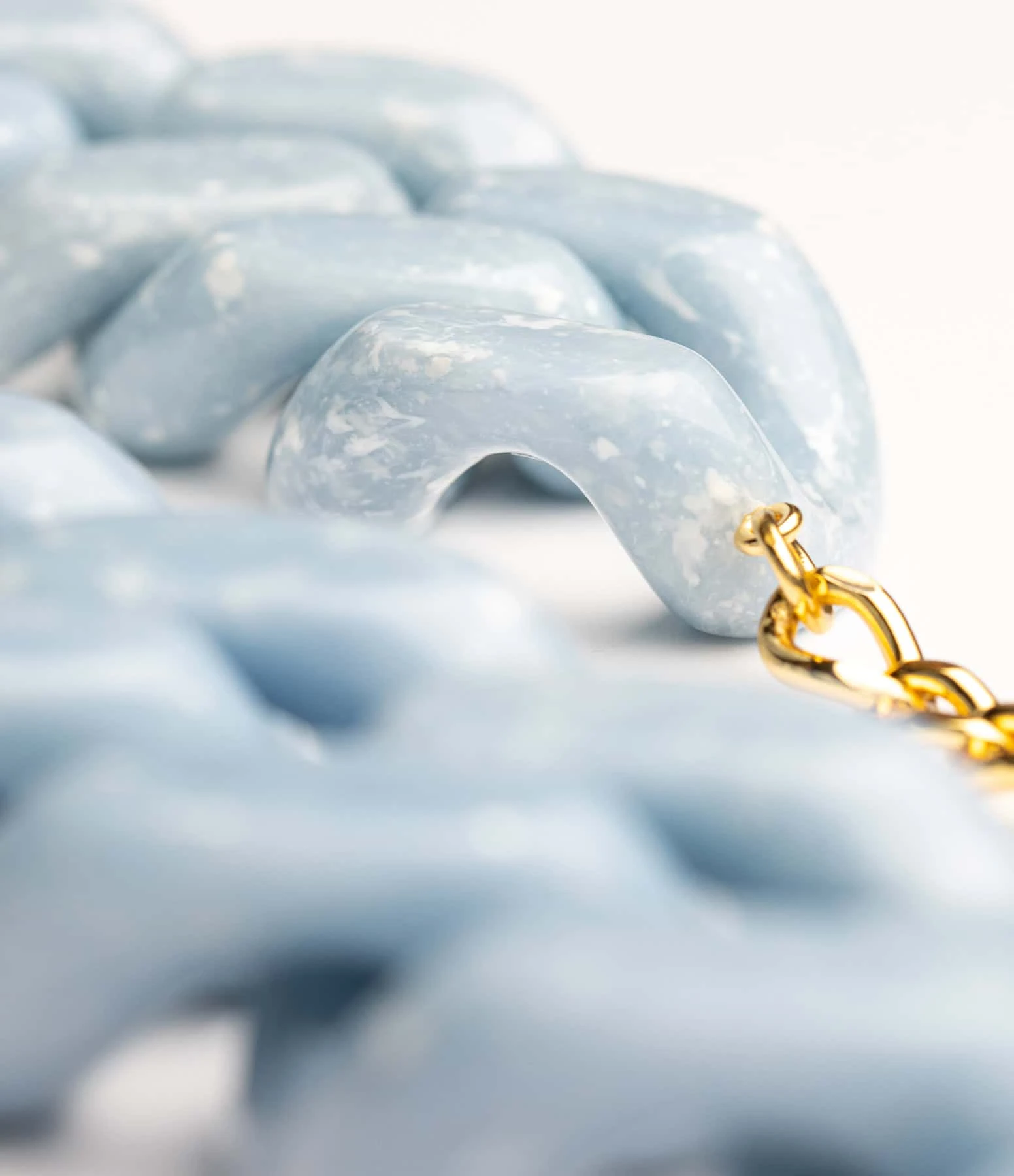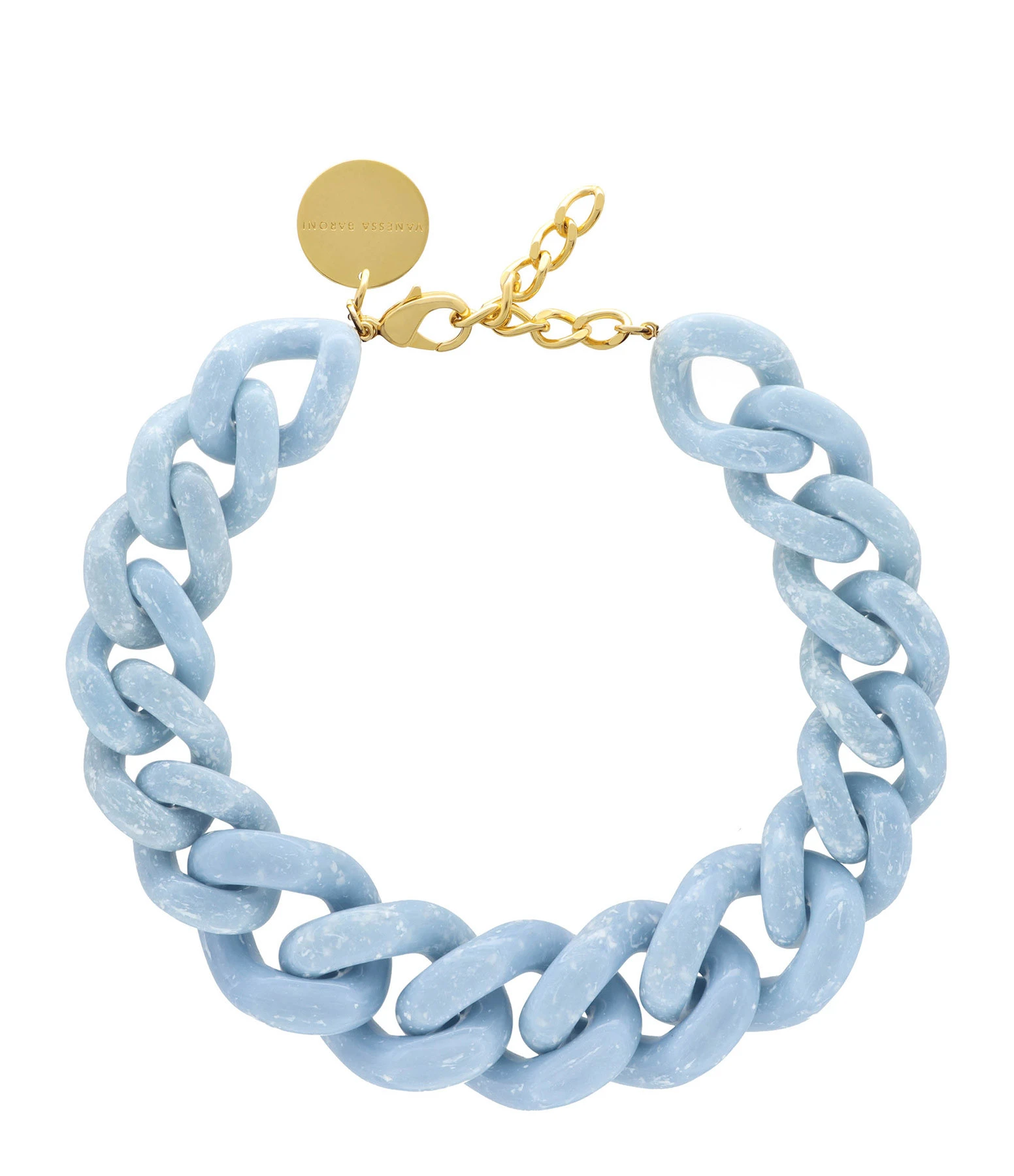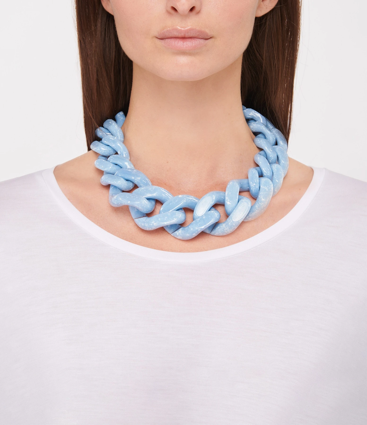 Collier bleu marbré à gros maillons. Fermoir classique à ressort.