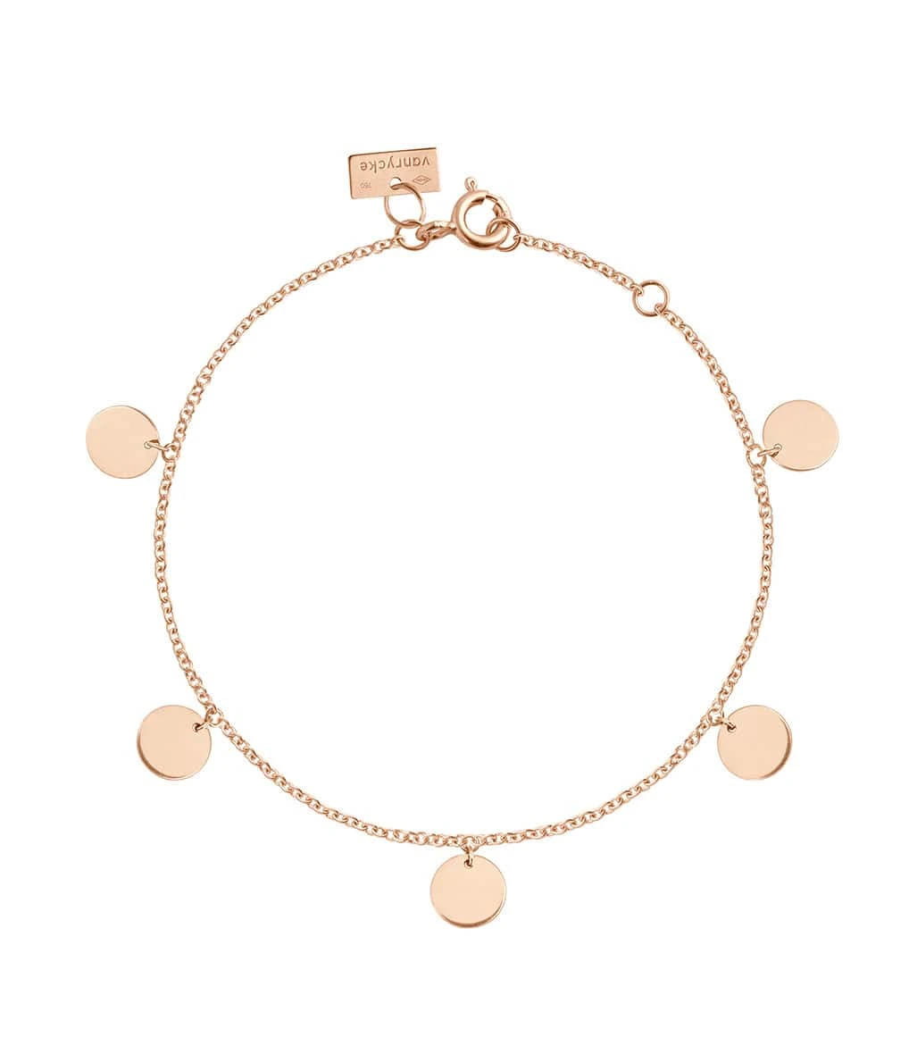 Bracelet sur chaîne en or rose agrémenté de pastilles. Fermoir classique.