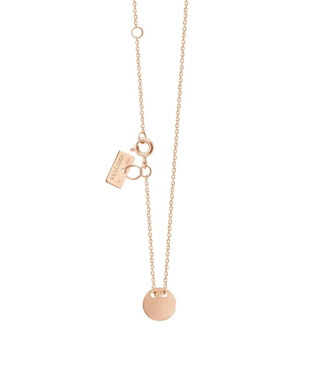 Collier sur chaîne en or rose avec pendentif rond. Fermoir classique.