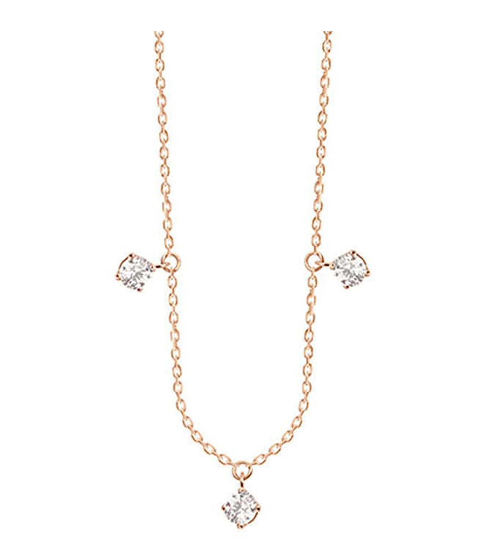 Collier sur chaîne en or rose avec trois pampilles serties de diamants blancs. Fermoir classique.
