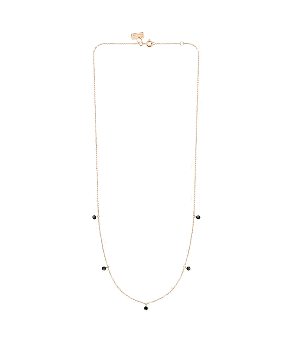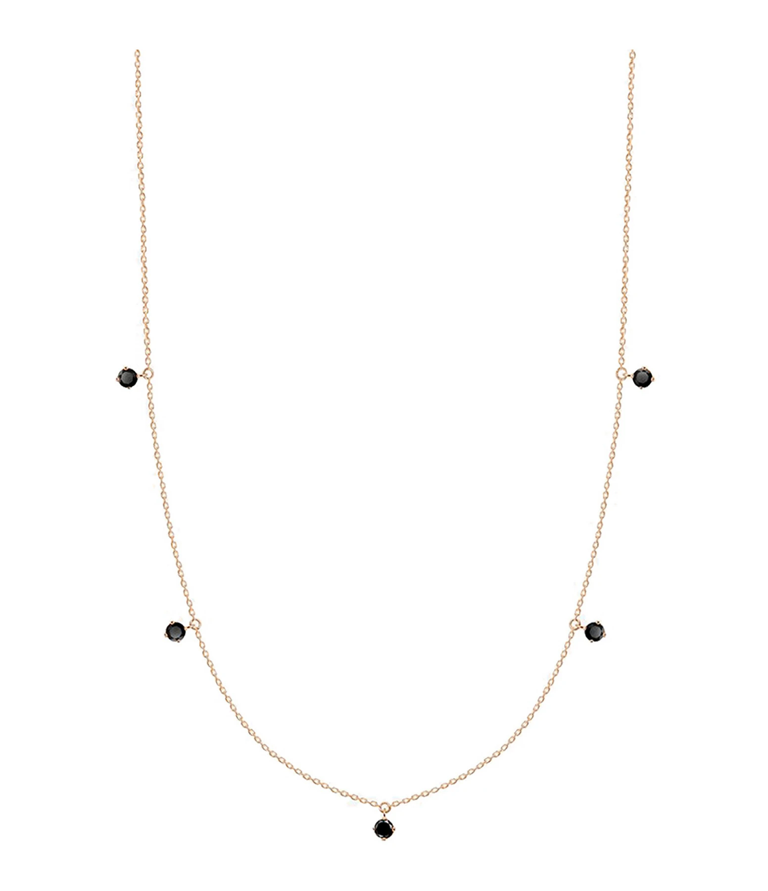 Collier en or rose avec cinq pampilles serties de diamants noirs. Fermoir classique.