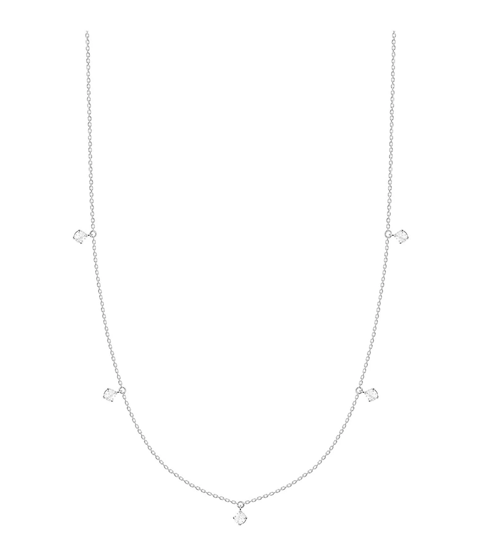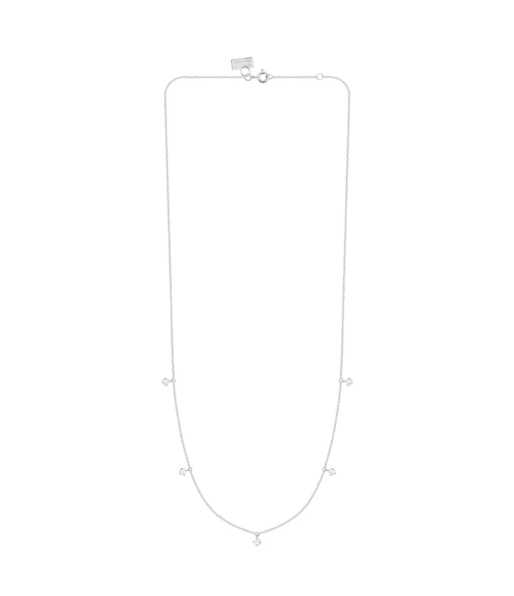Collier sur chaîne en or blanc, cinq diamants en pendentif.